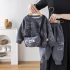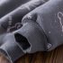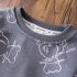 – Bluziță/hanorac cu mânecă lungă, de culoare gri închis, confecționat din bumbac gros. Este decorat cu imprimeuri artistice cu ursuleți și motive stelare, care îi conferă un aspect proaspăt și modern. Manșetele elastice ale mânecilor asigură confort suplimentar și căldură.