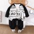 – Bomber/hanorac în combinație de negru și alb, realizat dintr-un material de bumbac dens. Decorat cu imprimeuri mari și amuzante cu dinozauri, care adaugă personalitate și un aspect modern. Modelul are manșete elastice și închidere practică în față — ideal pentru plimbări și jocuri în aer liber.