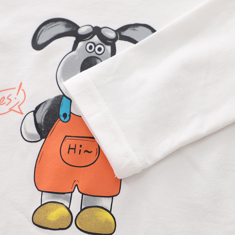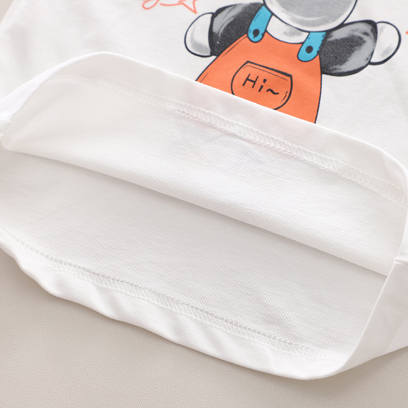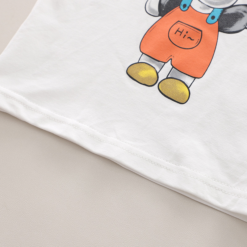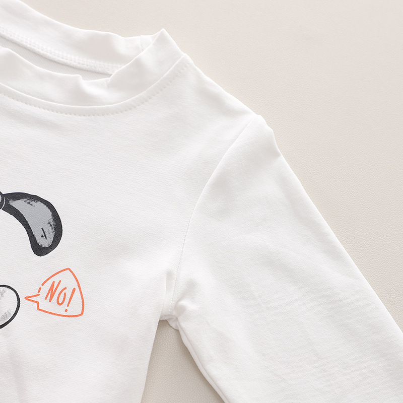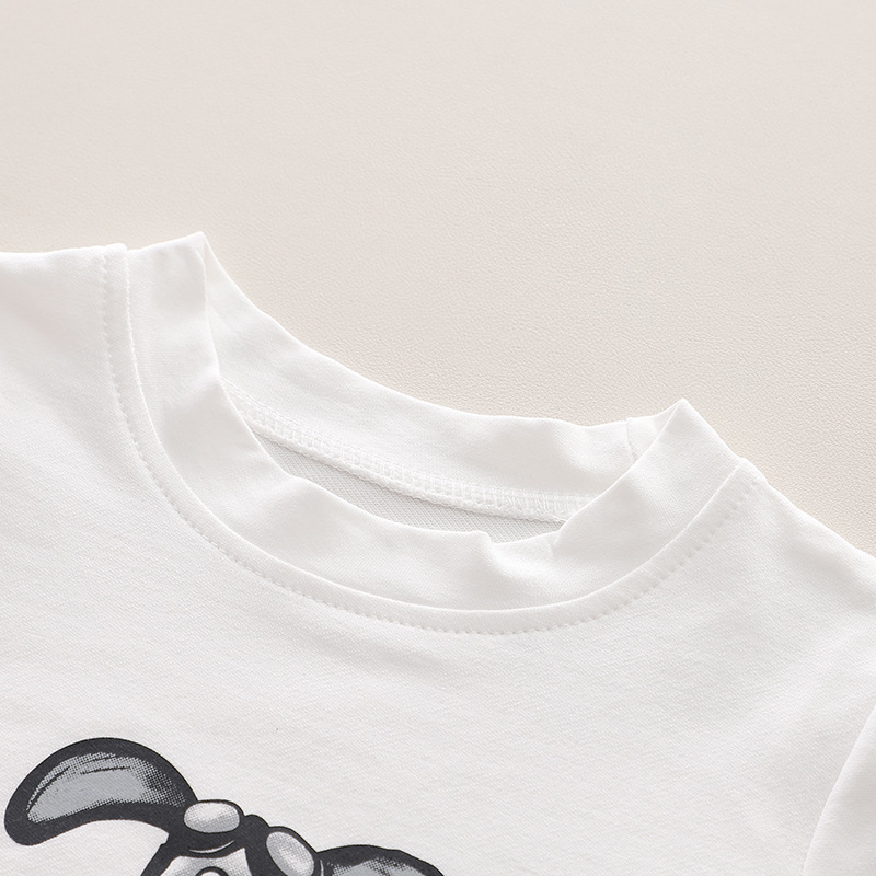 -Tricou alb din bumbac, cu elasticitate ușoară și un imprimeu mare, care se asortează perfect cu geacă.