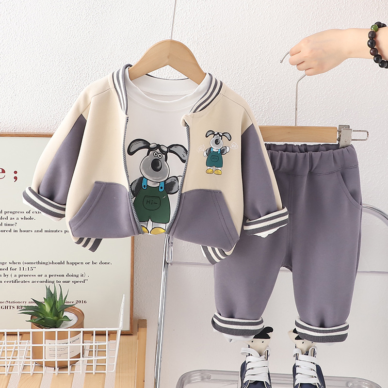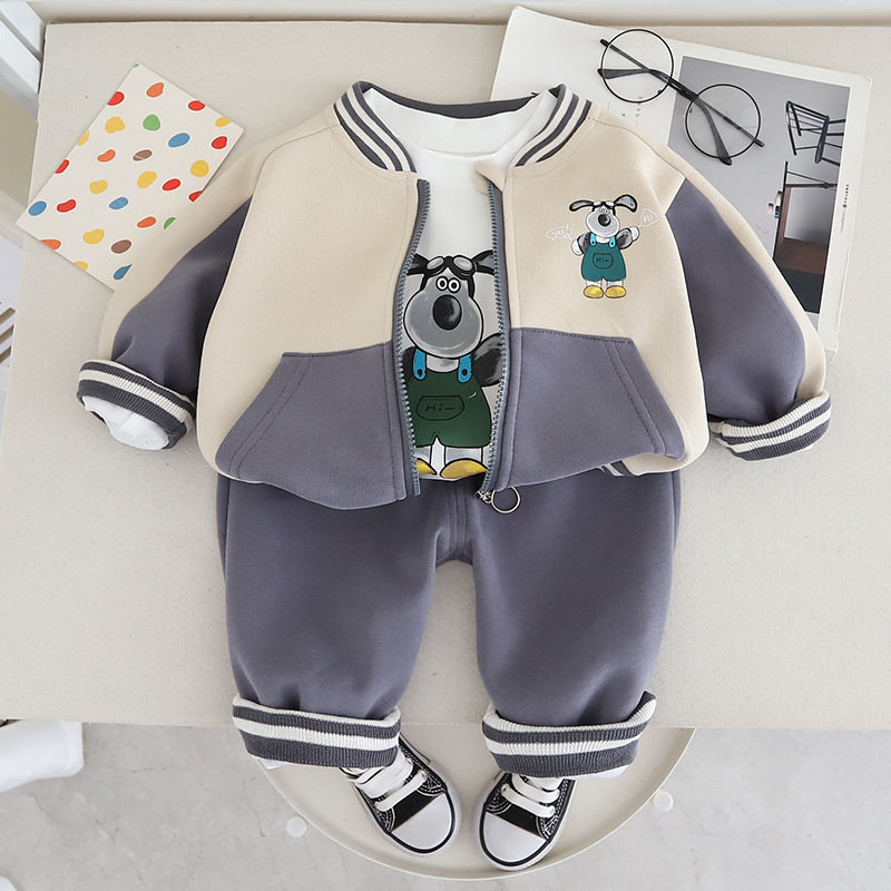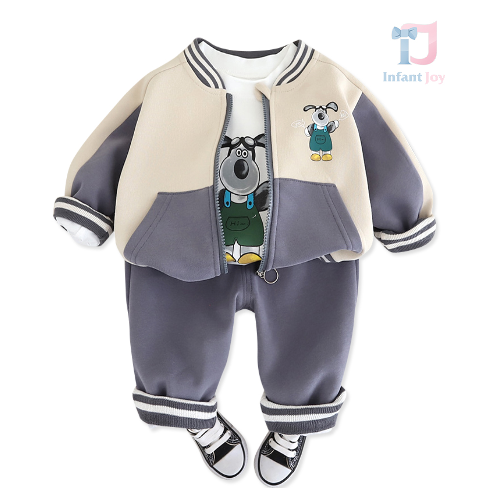 Set sport de 3 piese cu bomber și imprimeuri Playful Pup Grey