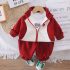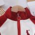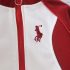 -Hanorac cu guler înalt și fermoar, confecționat din material de înaltă calitate, în culori contrastante de roșu și alb. Designul include o broderie elegantă care adaugă un accent stilat. Manșetele și elasticul din talie asigură o potrivire confortabilă, iar gulerul înalt protejează de vremea rece.