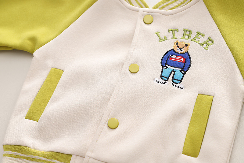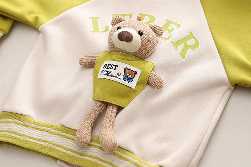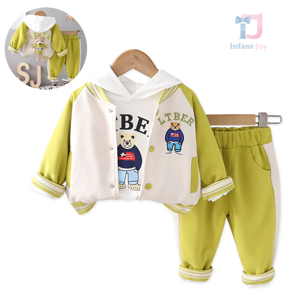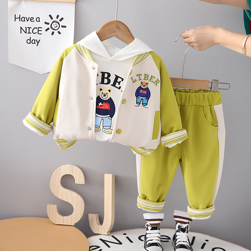 Set sport de 3 piese cu hanoră, bomber și ursuleț 3D pe spate Greenish Bimbo