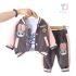-Hanorac din material de bumbac de înaltă calitate, în combinație de culori roz pal și grafit. Model cu aplicații pe ambele părți, broderie, două buzunare frontale + manșete elastice bicolore. Închidere cu butoane.