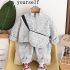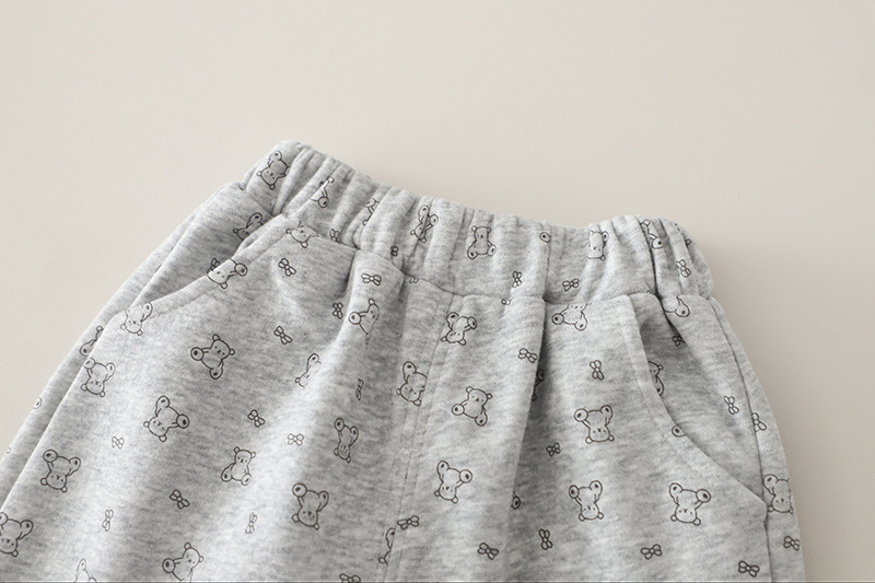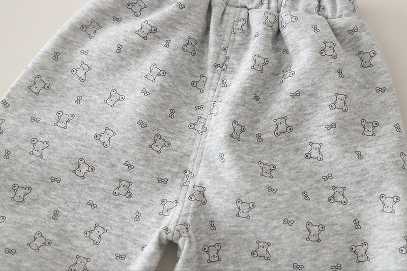 – Pantalon în aceeași nuanță de gri deschis și cu același imprimeu cu ursuleți, realizat dintr-un material moale și elastic pentru confort maxim. Modelul are talie elastică pentru îmbrăcare ușoară și comoditate pe tot parcursul zilei, iar terminațiile de la picioare sunt prevăzute cu elastic, oferind un aspect sportiv și o potrivire stabilă.