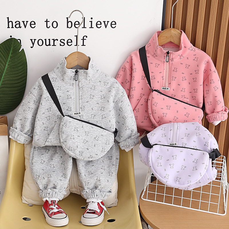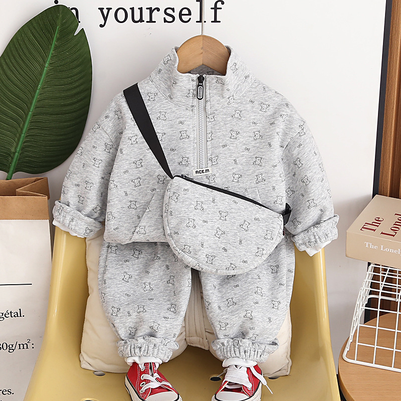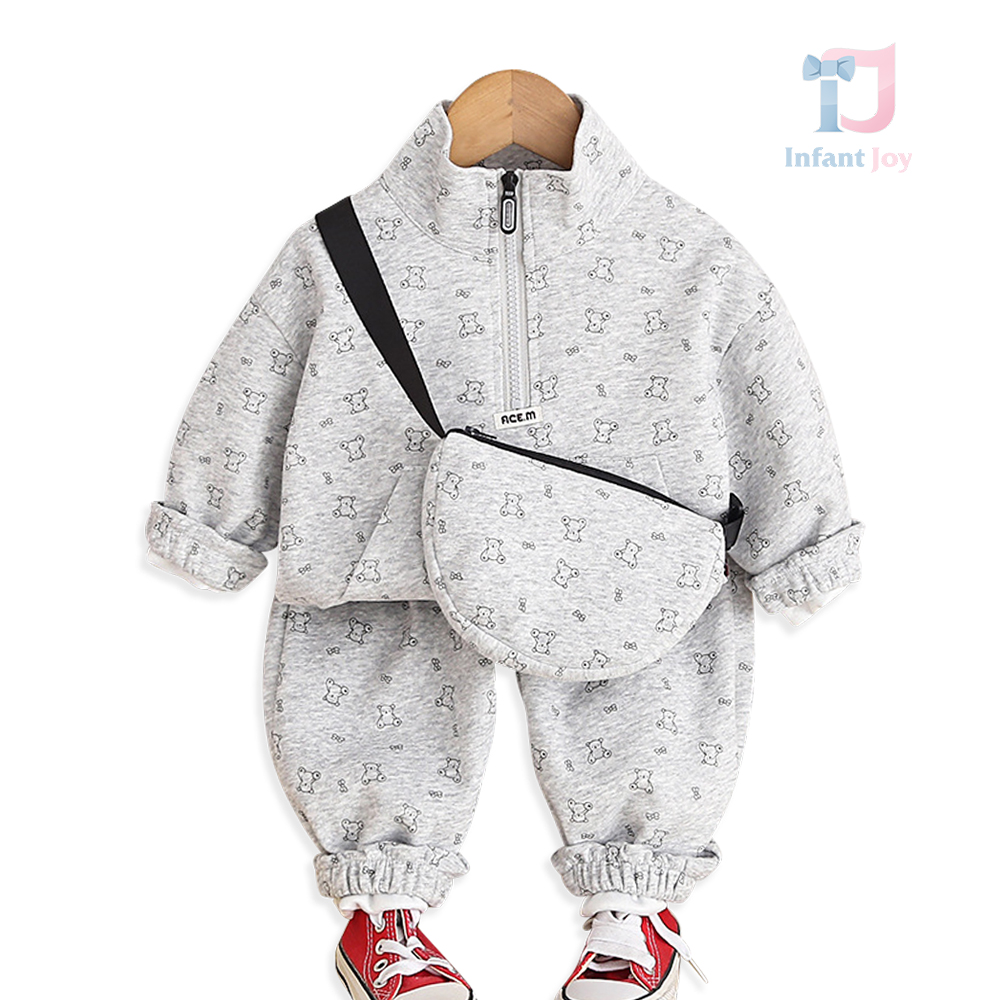 Set sport de 3 piese din bluză/sweatshirt cu guler înalt, pantaloni și geantă de umăr Ace Bear Grey