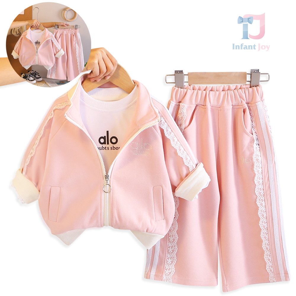 💗 Set modern și sport din 3 piese pentru fetiță, care combină confortul, aspectul sport și elementele decorative delicate.