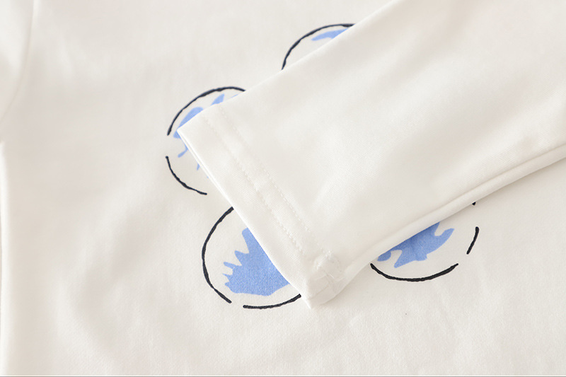 – Bluză cu mânecă lungă, realizată din material fin și confortabil din bumbac, într-o nuanță deschisă. Designul este completat de un imprimeu colorat în față, care oferă o notă jucăușă și copilărească.