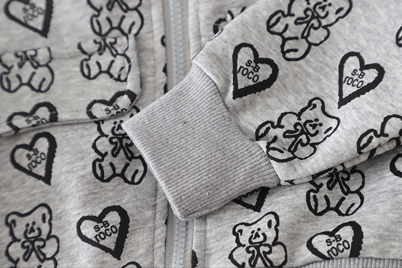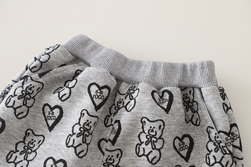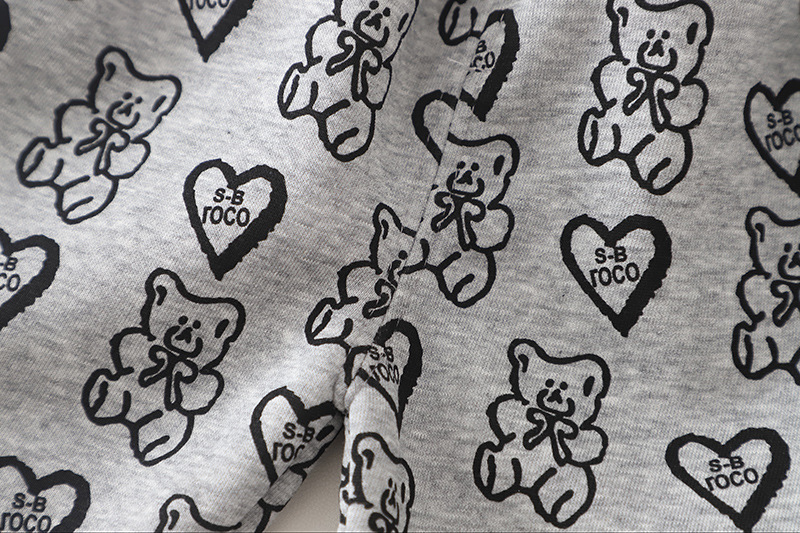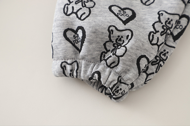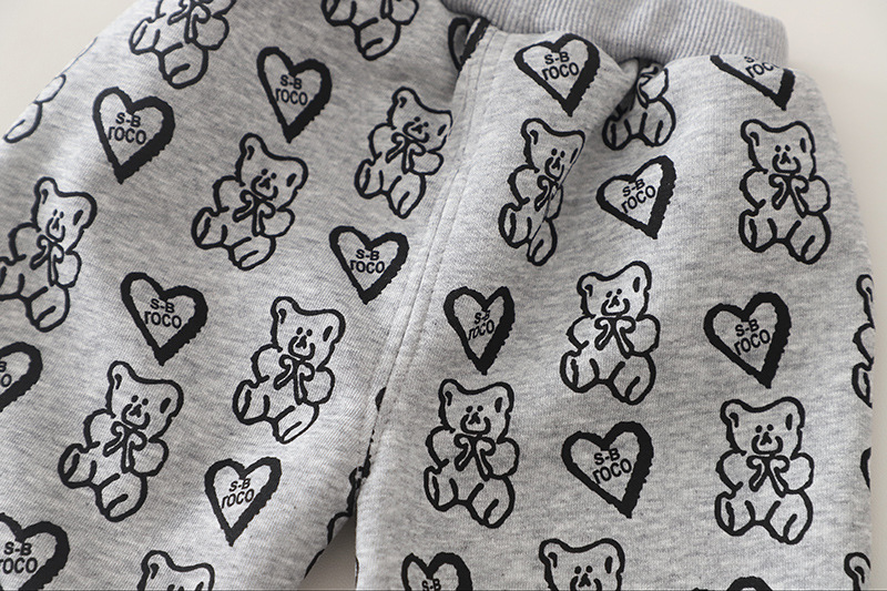 – Pantalon – model confortabil, cu croială lejeră, talie elastică și manșete elastice la glezne pentru stabilitate în mișcare. Imprimeul cu urși și inimi este în armonie cu hanoracul și completează perfect ansamblul.