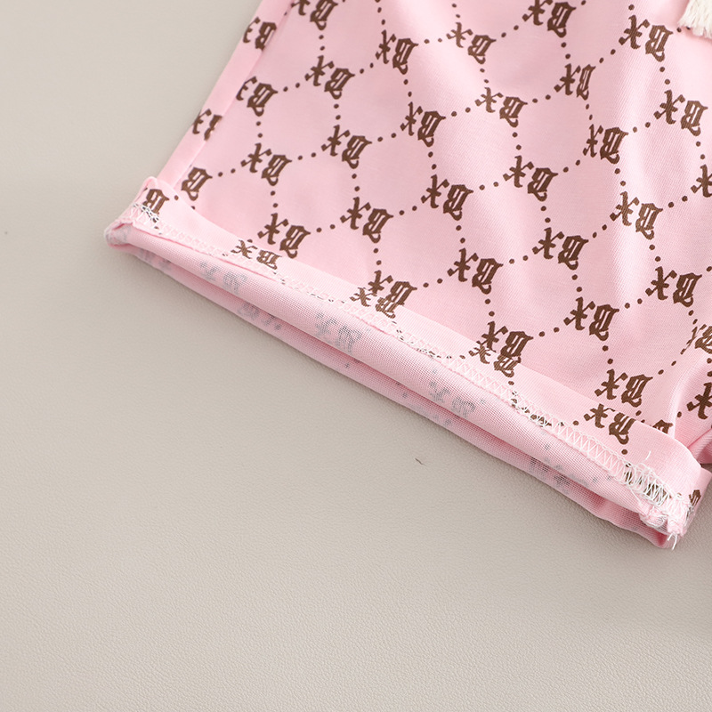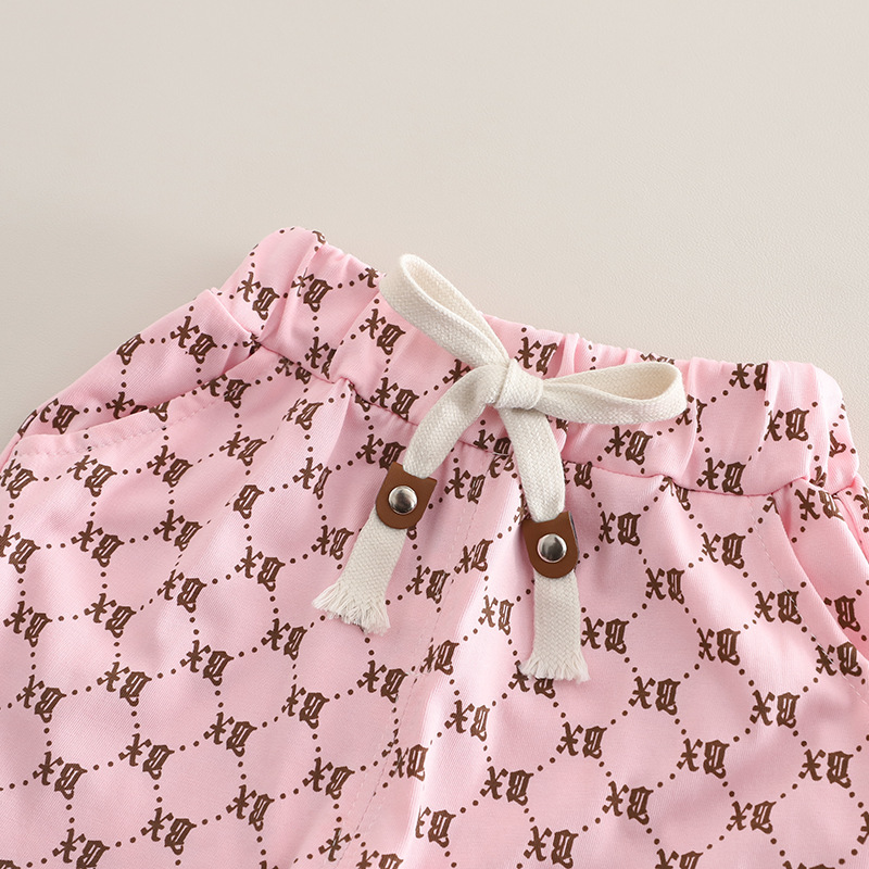 -Pantaloni scurți asortați, cu talie elastică și șnur pentru confort, plus două buzunare frontale.