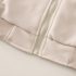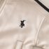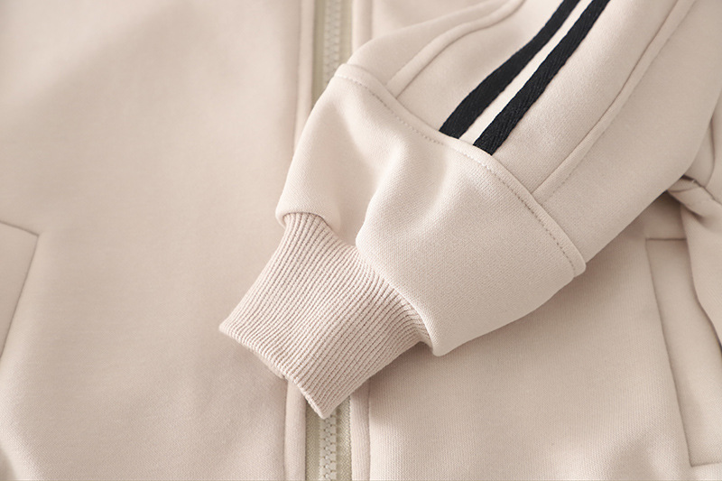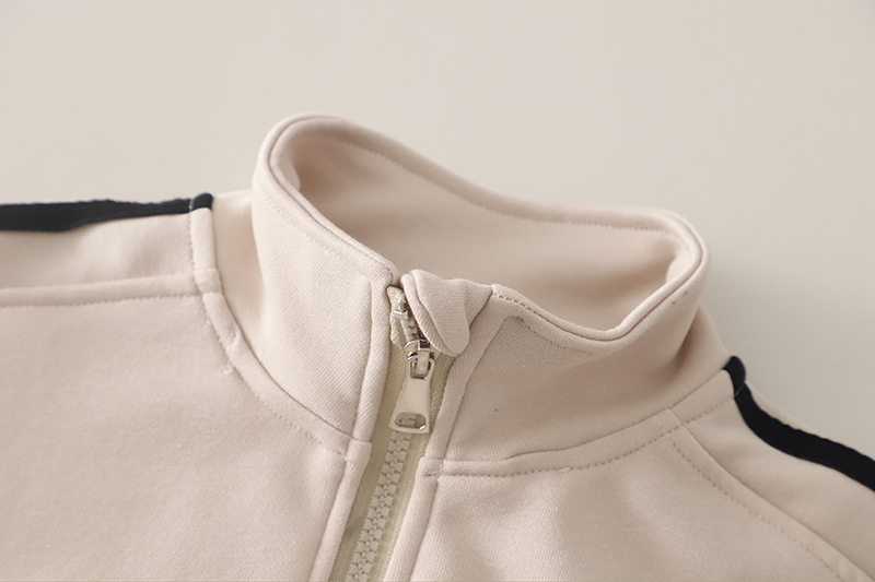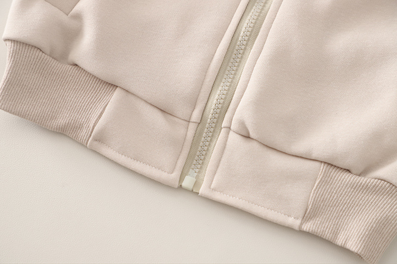 – Hanorac/geacă cu fermoar în nuanță bej, confecționat dintr-un material moale și plăcut la atingere. Modelul are guler înalt, fermoar pe toată lungimea și manșete din rib. Accentul este o mică broderie în față, care adaugă un detaliu fin și elegant.