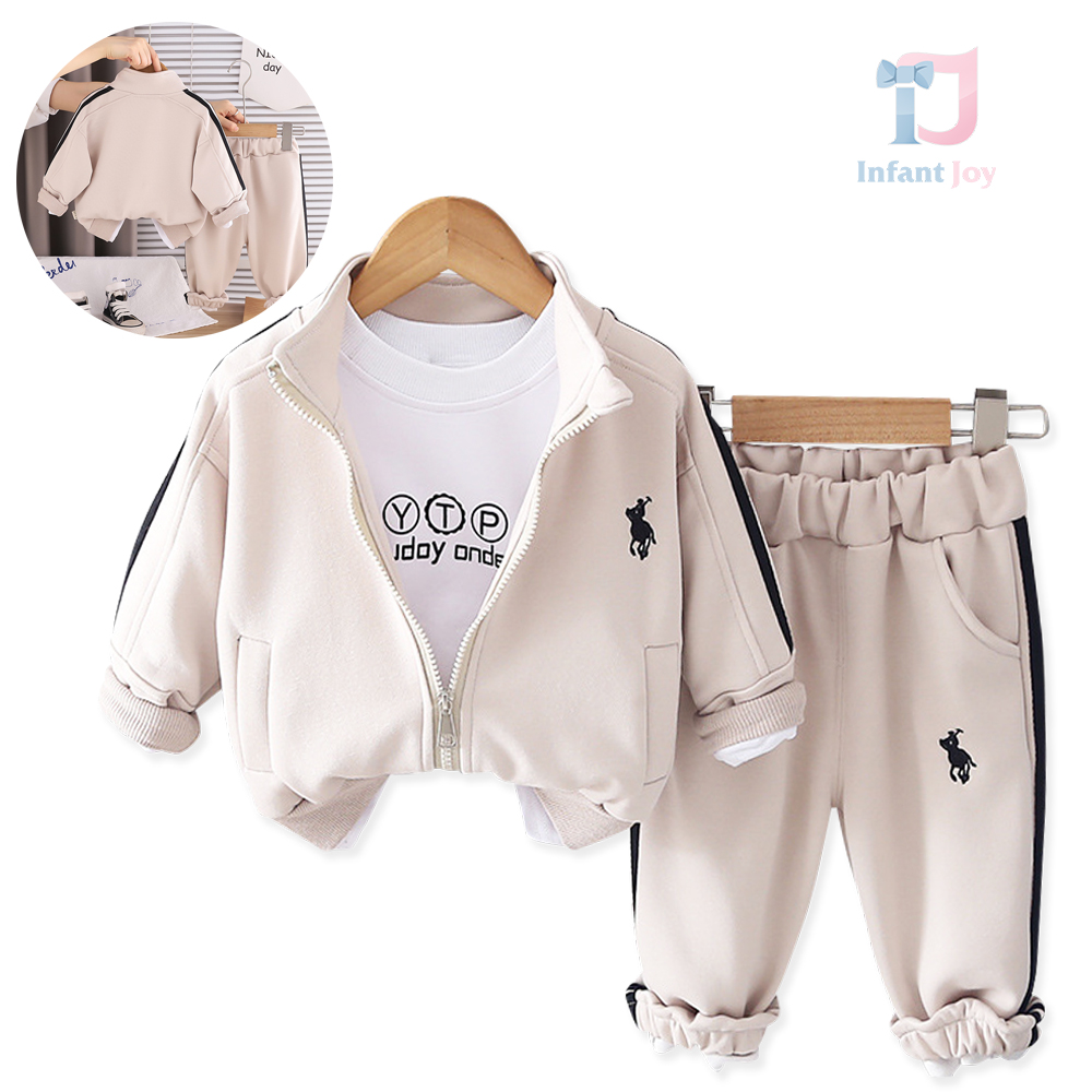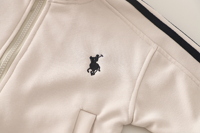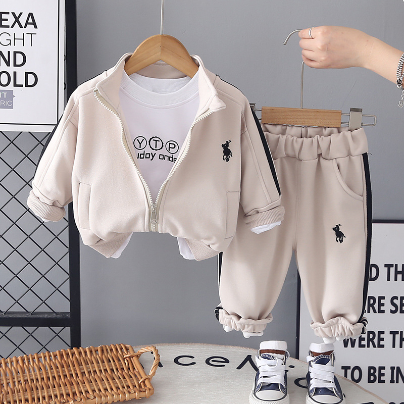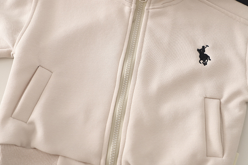 Set sport de 3 piese format din hanorac cu guler înalt, bluză și pantaloni Beige Polo