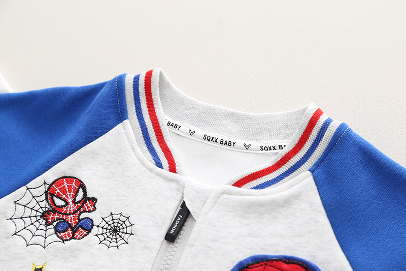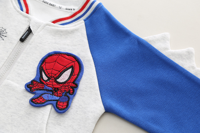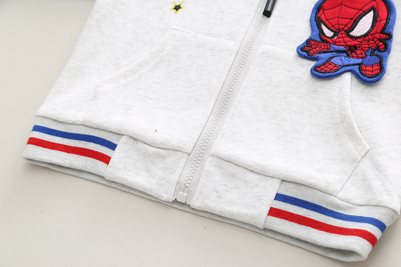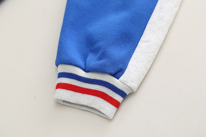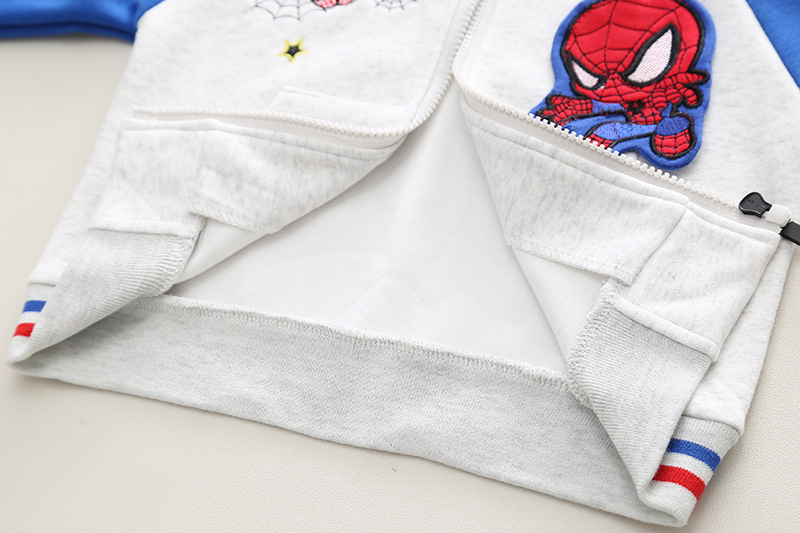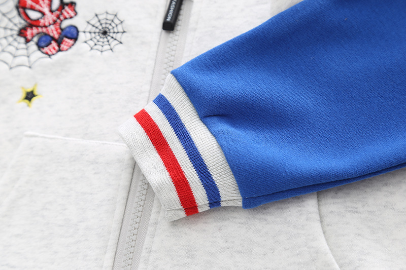 -Hanorac din material moale și de înaltă calitate, într-o combinație de albastru și gri deschis. Model cu închidere completă frontală cu fermoar, manșete elastice și buzunare frontale + elemente 3D pe mâneci, broderie și emblemă cu personajul preferat al copiilor.