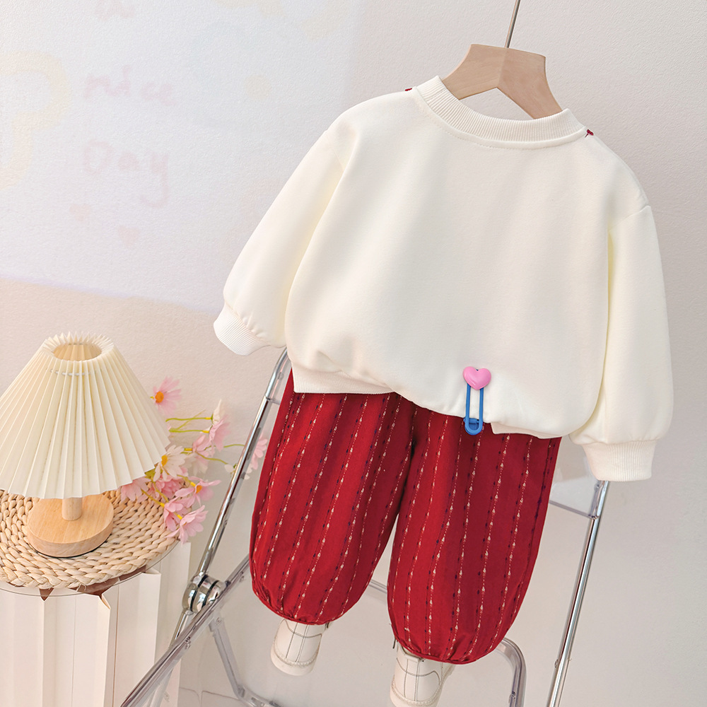 Set sport-elegant de 2 piese cu bluză/hanorac cu accente 3D, imprimeu și pantaloni Play With Me