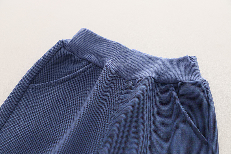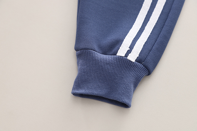 – Pantalon în culoare bleumarin, cu dungi decorative albe pe laterale. Talie cu elastic moale și manșete la tivurile picioarelor pentru confort maxim și libertate de mișcare.