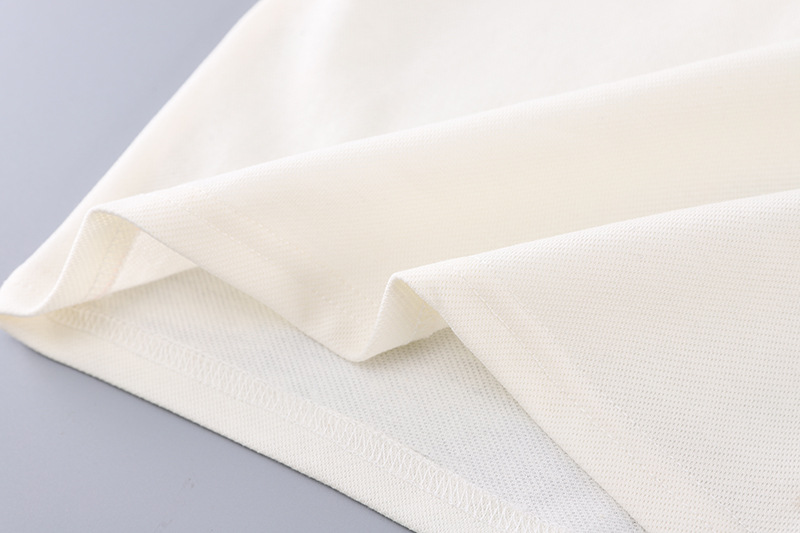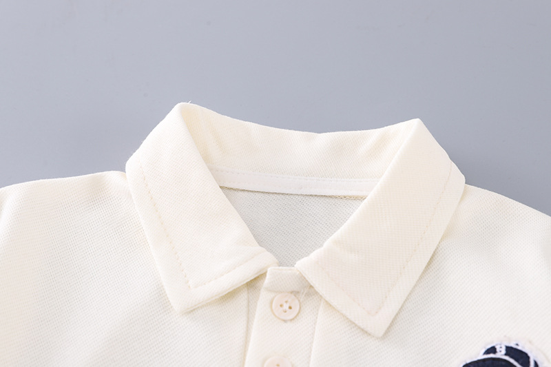 -Bluză cu guler tip polo și emblemă brodată, confecționată din material tip „lacoste”, ideală pentru vară. Nuanța de vanilie creează un aspect elegant, accentuat de gulerul clasic cu nasturi. Pe piept este aplicat un ursuleț și inscripția „TEDDYBEAR”, adăugând un accent jucăuș, dar stilat. O mică decorațiune pe mânecă completează designul echilibrat.