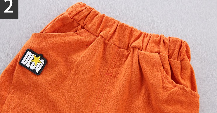 -Pantaloni scurți portocalii, confecționați din țesătură moale și elastică din bumbac, care oferă libertate de mișcare și durabilitate. Talia elastică permite îmbrăcarea ușoară și se adaptează perfect la corp.