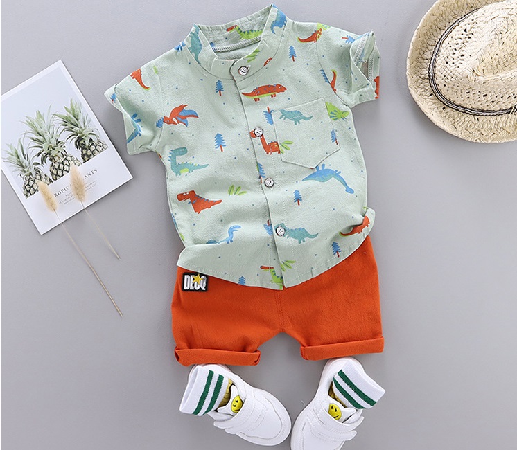 Set sport elegant de 2 piese din cămașă cu imprimeu și pantaloni scurți Dinos Steps