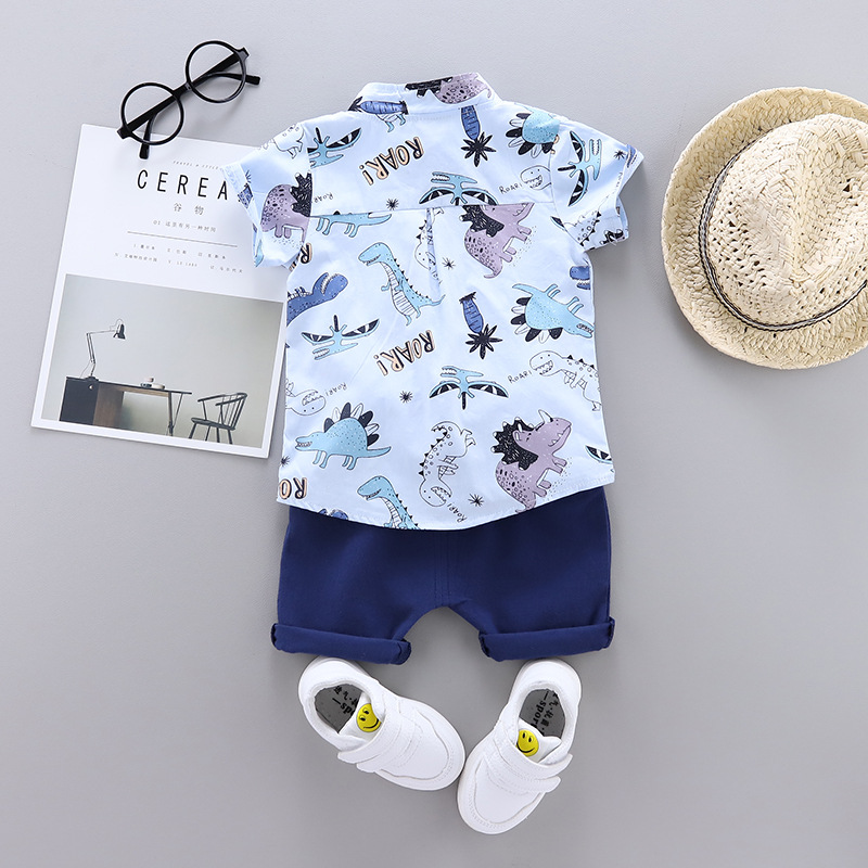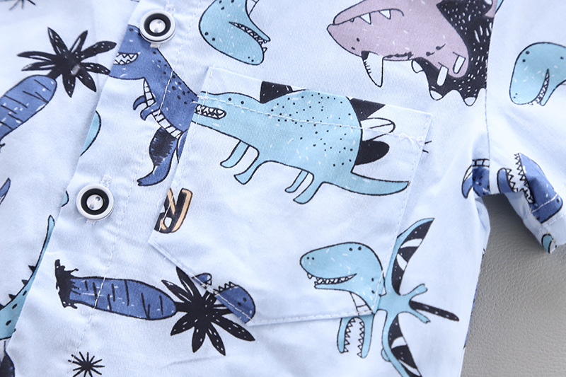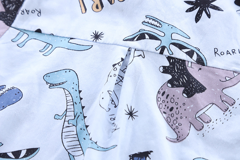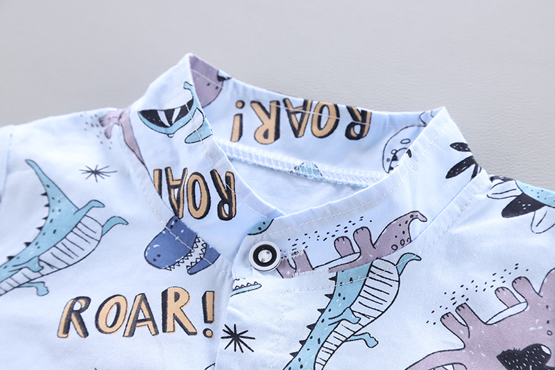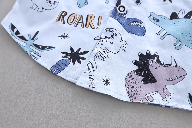 -Cămașă bleu cu mânecă scurtă, din material ușor de bumbac. Decorată cu dinozauri colorați, palmieri și inscripția „ROAR!” – pentru un stil vesel și curajos. Modelul are guler clasic și închidere cu nasturi mici pentru o îmbrăcare rapidă și ușoară.