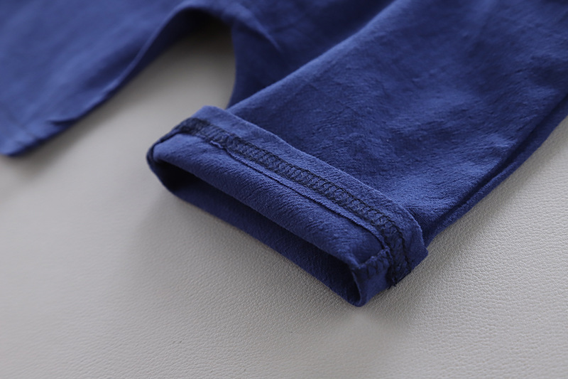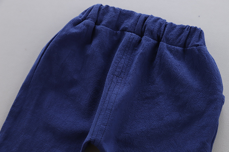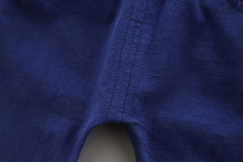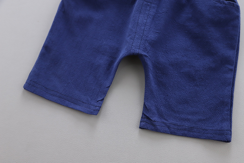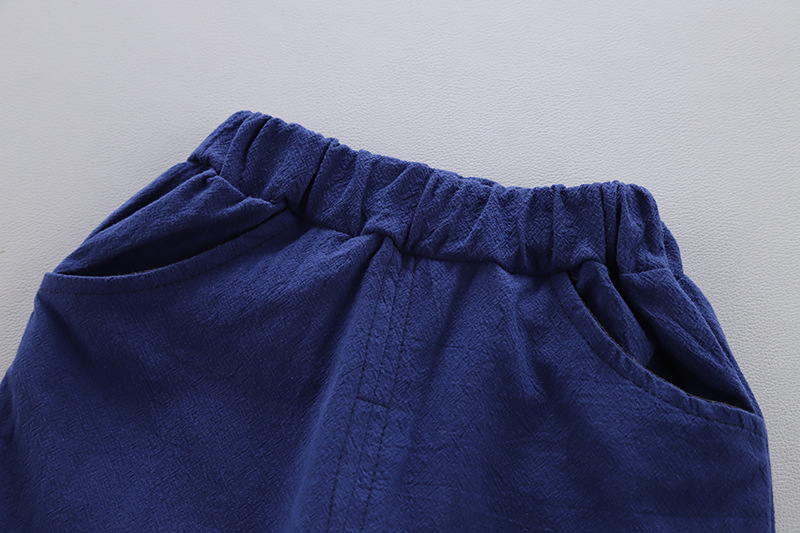 -Pantaloni scurți bleumarin, cu talie elastică pentru confort maxim la purtare. Confecționați din bumbac respirabil, cu două buzunare laterale pentru micile „comori” și un aspect curat și ordonat.