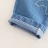 -Pantaloni din denim bleumarin, cu talie elastică pentru îmbrăcare ușoară. Două buzunare funcționale și o broderie cu dinozaur.