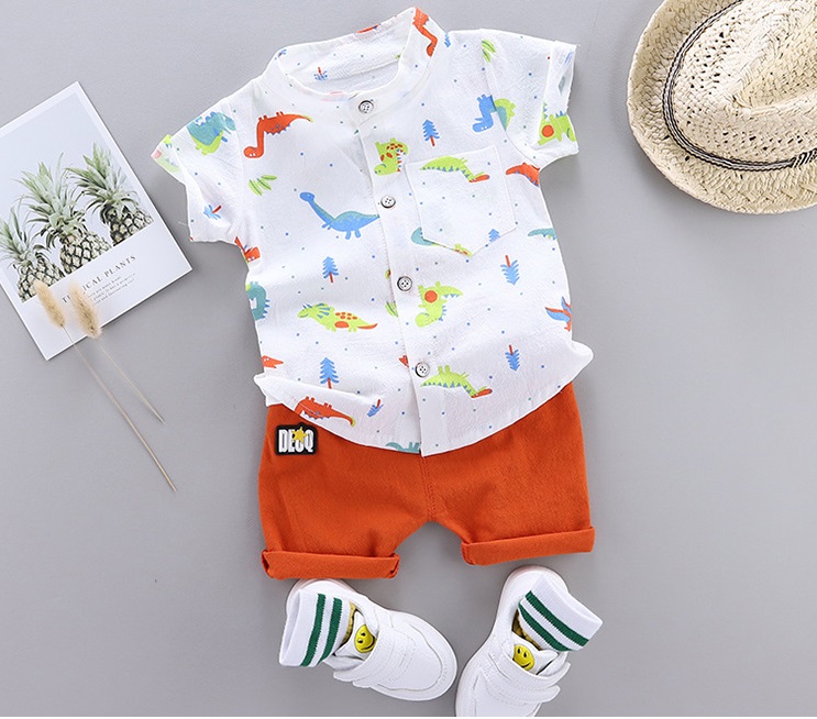 Set sport elegant din cămașă cu imprimeu și pantaloni scurți Jurassic Joy