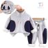 – Pantalon asortat perfect cu partea superioară. Are talie elastică cu șnur decorativ, două buzunare laterale și panouri albastre închise cu aceleași margini colorate. Tivul este căptușit cu un material moale și pufos, pentru căldură și confort pe tot parcursul zilei.