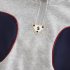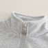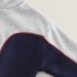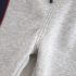 – Hanorac vatuit cu fermoar scurt, în nuanță gri deschis, confecționat din material moale și dens. Modelul dispune de un fermoar practic până la piept, pentru o îmbrăcare ușoară și reglarea căldurii. Liniile laterale în albastru închis, împreună cu marginile roșii, oferă un aspect dinamic și sportiv. Manșetele și partea interioară a mânecilor sunt căptușite cu un material pufos pentru confort suplimentar.