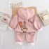 – Hanorac matlasat cu glugă, într-o nuanță roz, confecționat dintr-un material dens pe bază de bumbac, ideal pentru zilele mai răcoroase. Accentuul este imprimarea adorabilă și aplicația 3D cu iepurașul Judy Hopps, care adaugă o notă jucăușă, copilăroasă și atrăgătoare. Mânecile îndoite cu căptușeală albă oferă un plus de confort și stil.