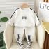-Bluză/hanorac din bumbac moale și de înaltă calitate. Model realizat în nuanța trendy a sezonului – gri melanj, cu accente suplimentare din elemente imprimate pe mâneci și un imprimeu minimalist în față, care adaugă un detaliu modern.