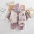 Set sport vatuit de 2 piese cu vestă din material fâș, sweatshirt cu glugă, pantaloni și gentuță de umăr Love Bear Lilac