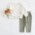 – Colanți în verde-gri, În ton cu partea de sus.. Talie elastică – pentru îmbrăcare rapidă, și tiv drept – pentru un aspect curat și confortabil.