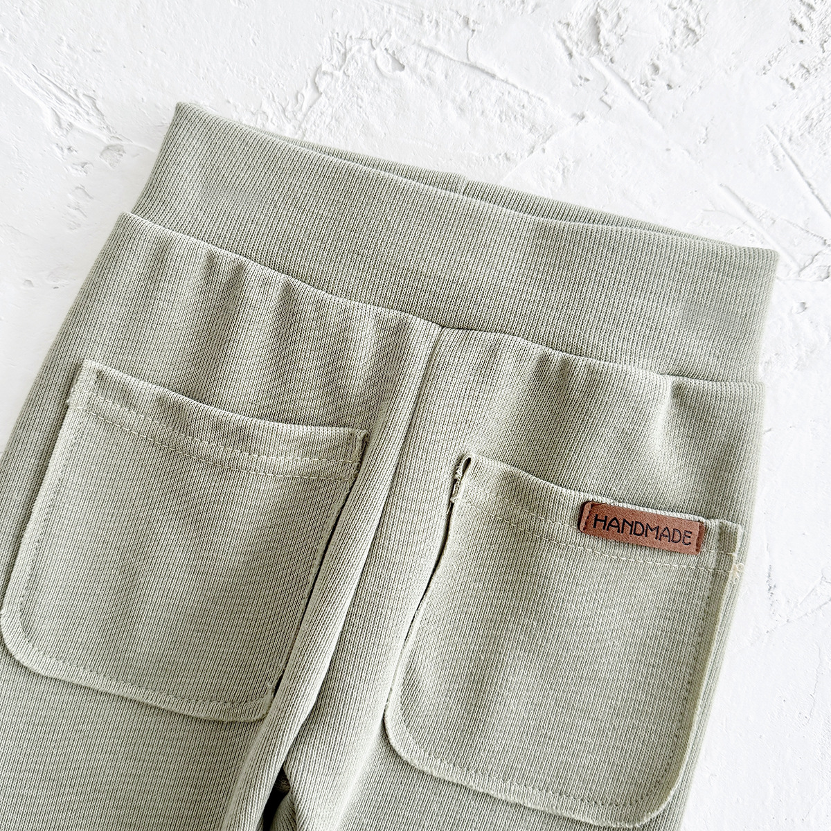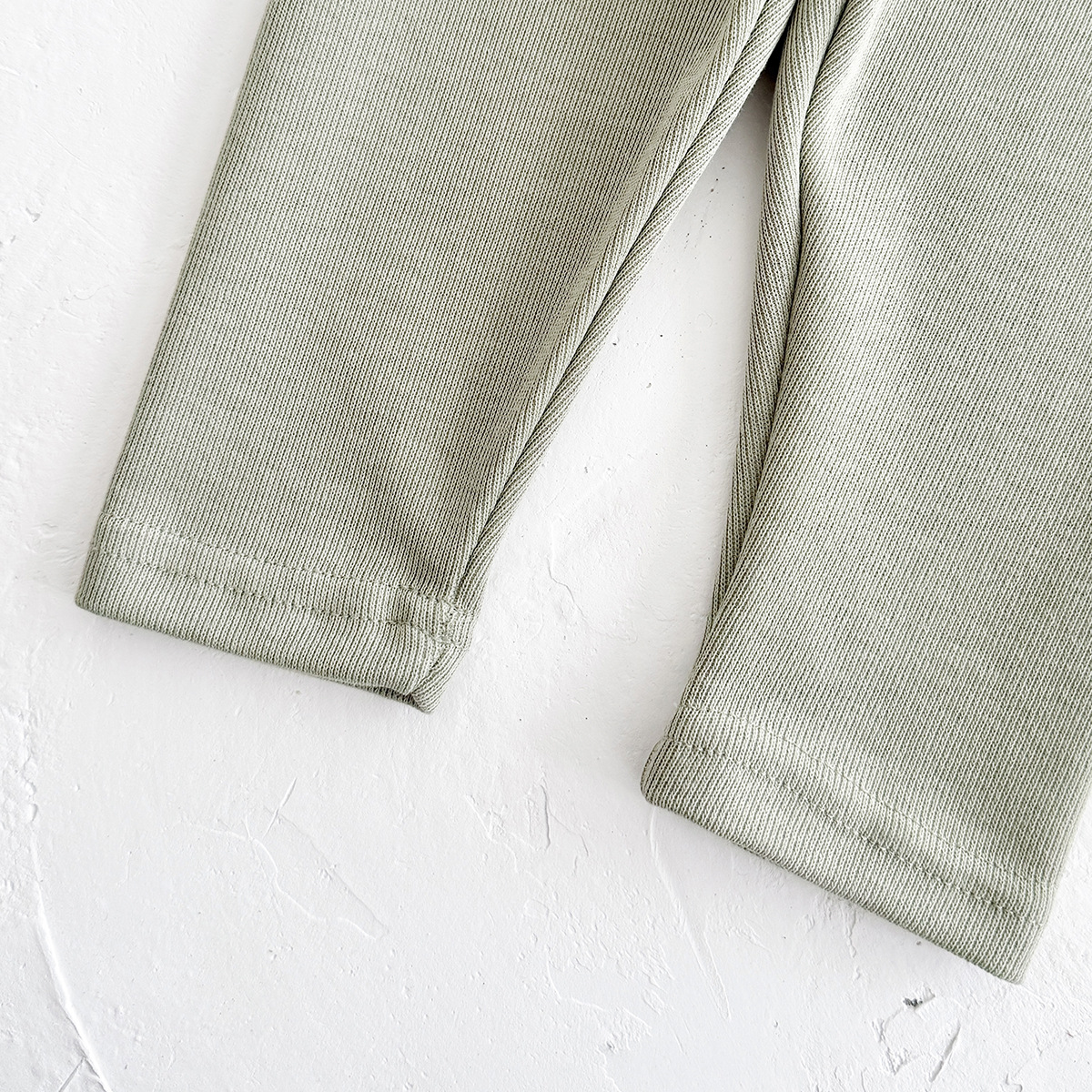 – Colanți în verde-gri, În ton cu partea de sus.. Talie elastică – pentru îmbrăcare rapidă, și tiv drept – pentru un aspect curat și confortabil.