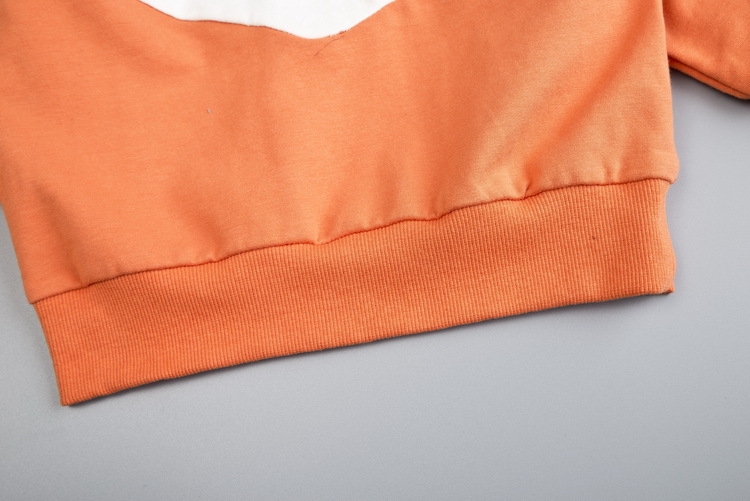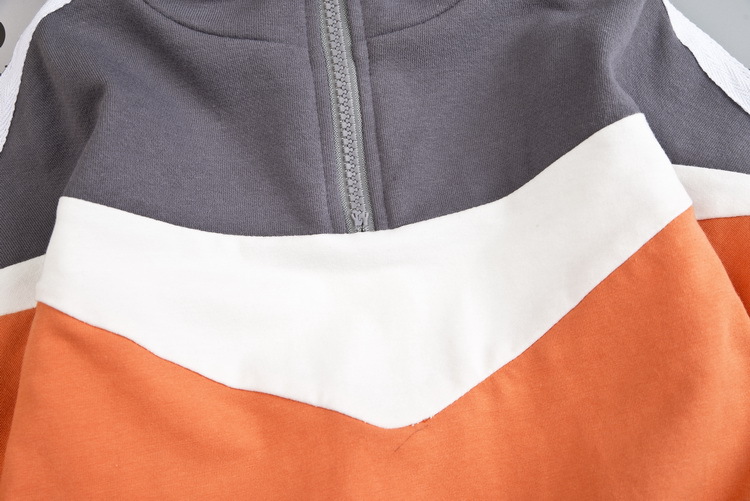 -Hoodie cu guler înalt, glugă și fermoar parțial, confecționat din tricot moale în culorile grafit, alb și portocaliu. Designul are o geometrie în formă de V în față, oferind un aspect modern și sportiv. Gulerul poate fi ridicat pentru protecție împotriva vântului sau lăsat jos pentru un look mai lejer.