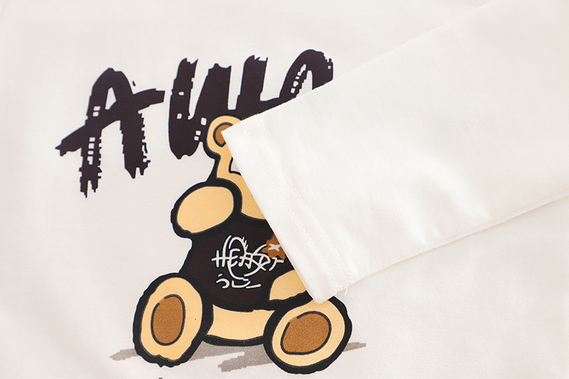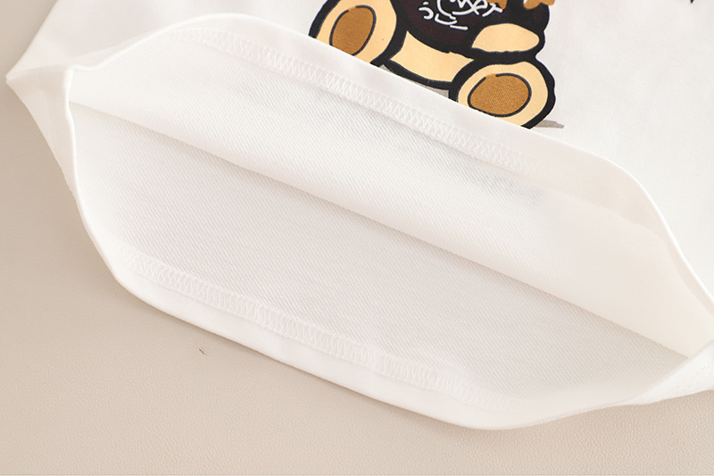 – Bluză albă cu imprimeu de urs hip-hop, realizată din jerseu fin cu decolteu rotund. Potrivită și pentru purtare individuală, în combinație cu blugi sau pantaloni sport.