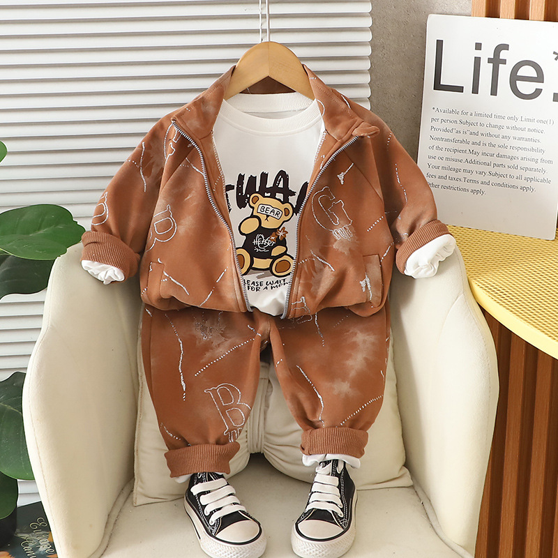 Set sportiv de 3 piese din hanorac, bluză cu imprimeu și pantaloni B-Boy Bear