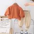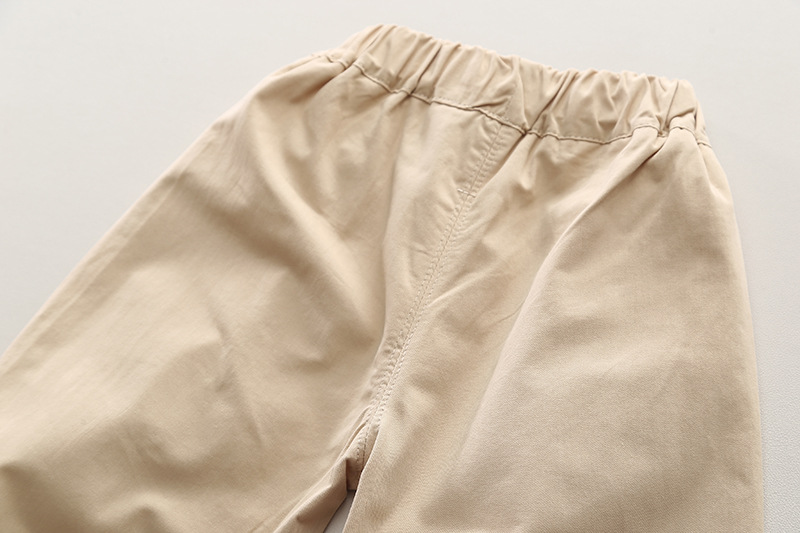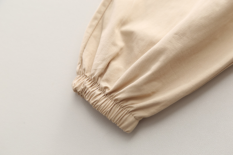 -Pantalon din material rezistent, în ton bej‑maroniu deschis, cu talie elastică pentru îmbrăcare rapidă, două buzunare laterale și manșete elastice la glezne pentru libertate de mișcare și fixare perfectă.