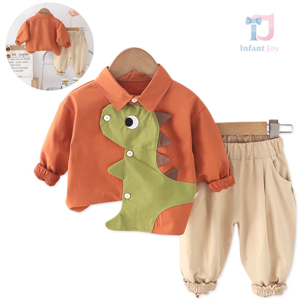 Set sportiv elegant de 2 piese cu cămașă și accent 3d Dino Parade