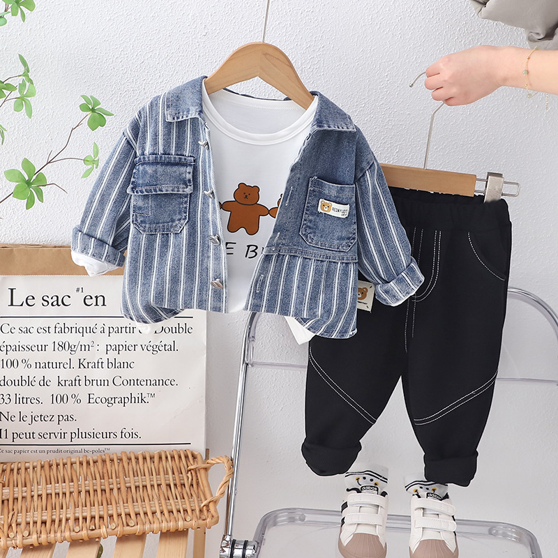 Set sportiv-elegant de 3 piese cu cămașă din blugi Bear Gamechanger