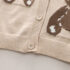 -Cardigan din tricot fin, de înaltă calitate, în culoare bej, cu broderii accentuate cu ursuleți. Model cu închidere completă în față, cu nasturi și manșete elastice, ripsate.