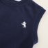 -Vestă fără mâneci, ușor de asortat cu cămașa. Fabricată în culoarea albastru închis, cu o mică broderie pe o parte.