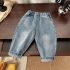 -Pantaloni din denim de înaltă calitate, rezistenți și comozi. Culoare albastru deschis clasic, cu un efect ușor uzat pentru un aspect modern. Talie elastică pentru o îmbrăcare ușoară și confort, cu manșete rulate pentru un plus de stil.