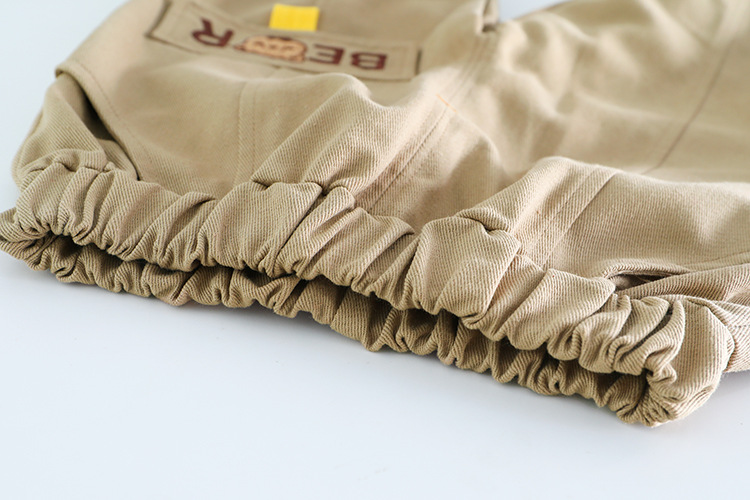 – Pantaloni confortabili, de culoare bej, cu croială dreaptă, elastic în talie și la glezne, cusături decorative frontale și un buzunar accentuat cu aplicație.