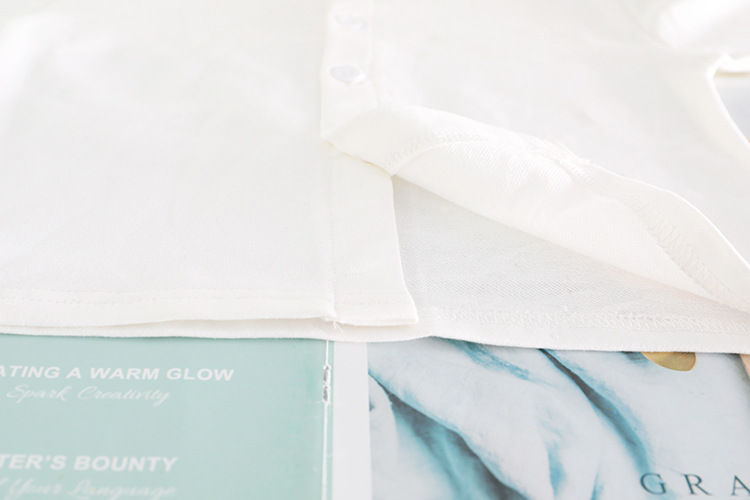 – Cămașă albă din bumbac, cu croială clasică, guler și închidere frontală.