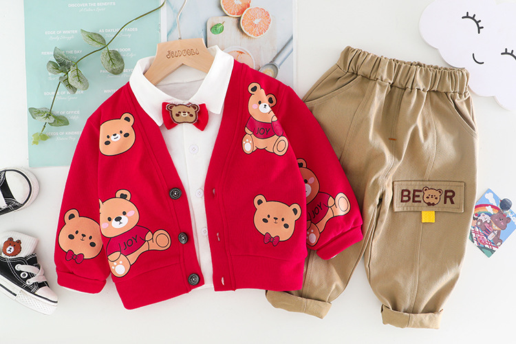 Set sportiv-elegant de 4 piese cu vestă și papion Mr. Bear Joy Red