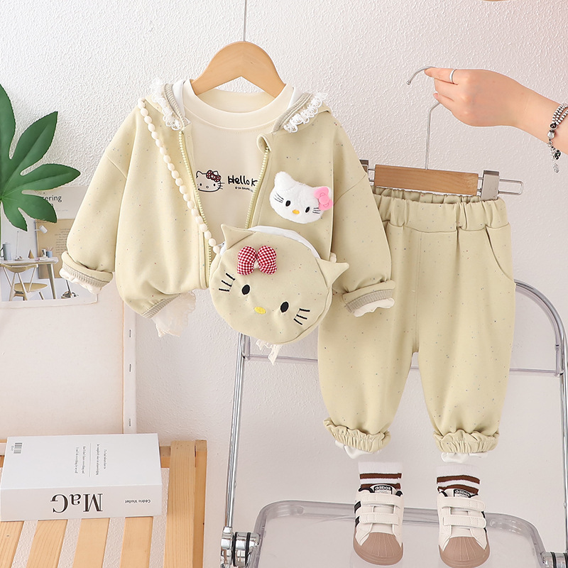 Set sportiv melanj din 4 piese, sweatshirt cu dantelă, bluză, pantalon și geantă Hello Kitty