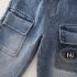 – Pantaloni din denim, în culoare albastru clasic. Modelul are talie elastică pentru îmbrăcare ușoară și confort la mișcare. Dispune de buzunare laterale funcționale tip cargo și broderie, iar cracii pot fi purtați ușor îndoiți pentru un stil mai relaxat și modern.
