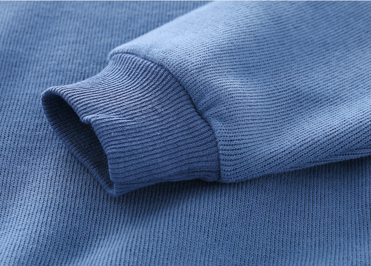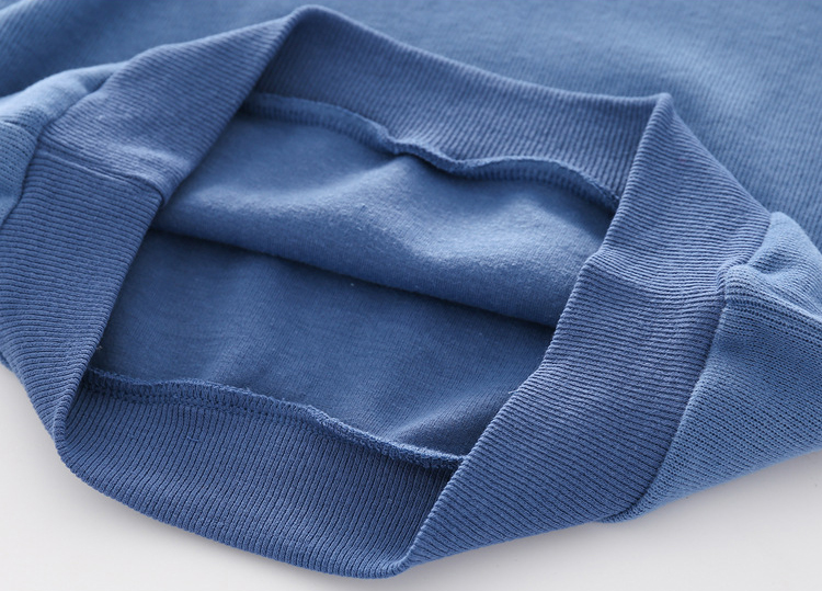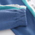 -Bluză albastră cu mâneci lungi, realizată din tricotaj fin, cu manșete elastice pentru un confort maxim și ornamente colorate pe mâneci.