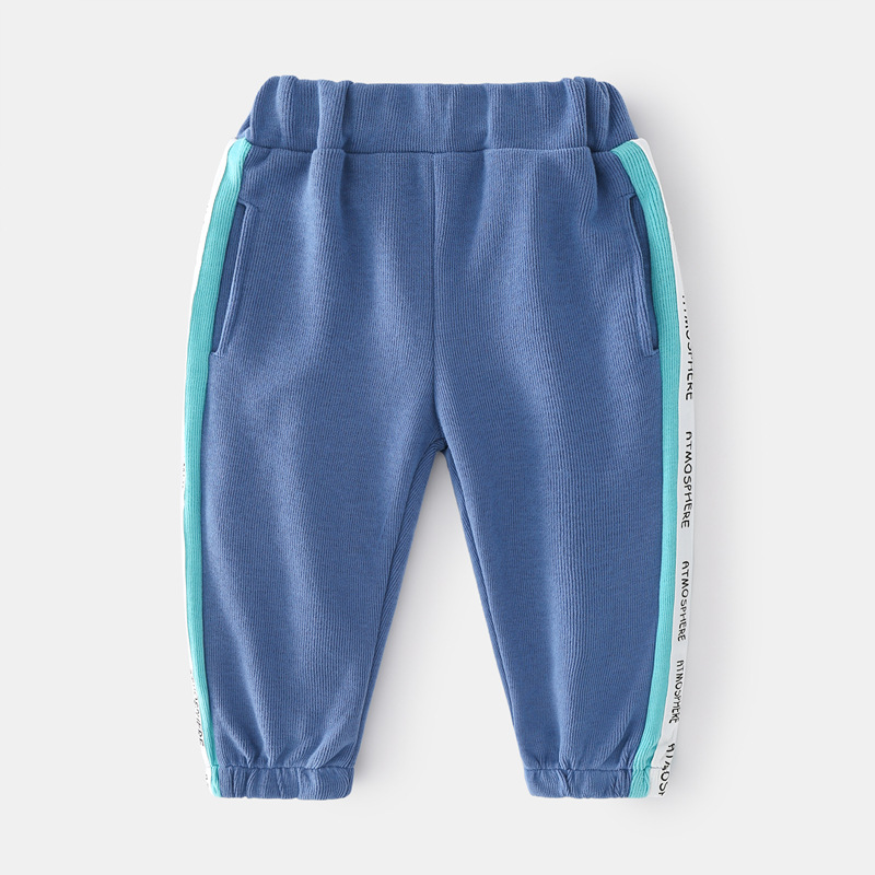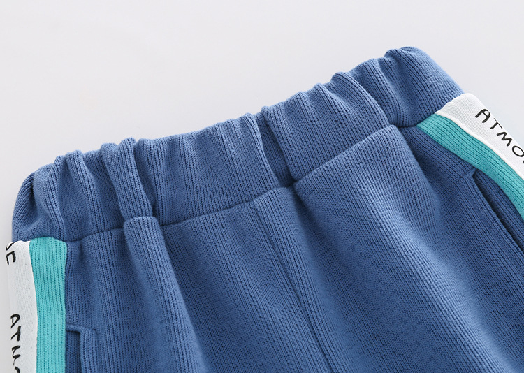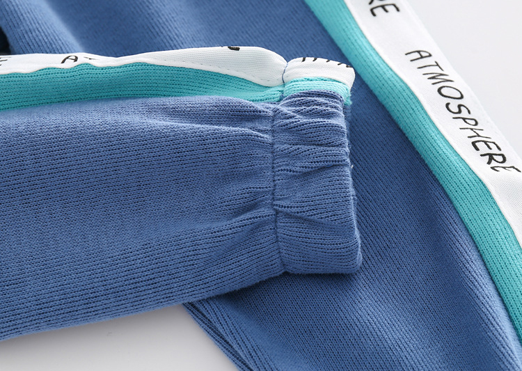 -Pantalon sport lung, cu talie și manșete elastice, buzunare și dungi laterale în nuanțe de turcoaz și alb. De-a lungul pantalonului sunt adăugate inscripții imprimate pentru un design modern.