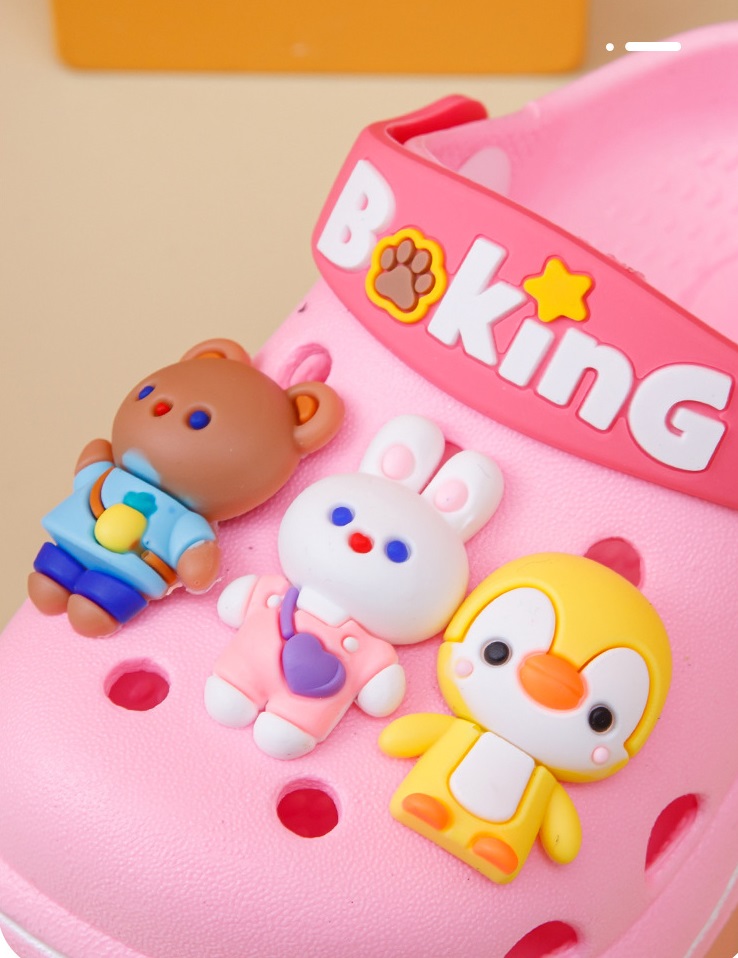 Șlapi tip Crocs cu imprimeu 3D Animal King Pink