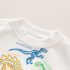 -Bluză/Hanorac din material de înaltă calitate, de culoare albă. Model cu mai multe imprimeuri cu dinozauri pe partea din față + manșete elastice la talie și încheieturi pentru confort.